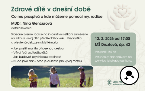 Srdečně vás zveme na setkání s renomovanou pediatričkou MUDr. Ninou Genčurovou na téma „Zdravé dítě v dnešní době – co mu prospívá a kde můžeme pomoci i my, rodiče“.