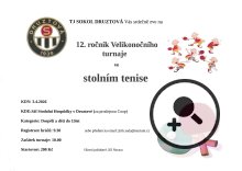 V pátek 3.4.2026 na sále Stodolní hospůdky, startovné 200 Kč, registrace hráčů od 9.30 hod, začátek v 10.00 hod.
