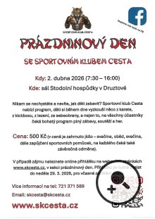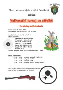V pátek 3. 4. 2026 - Hasičská zbrojnice SDH Druztová - všechny věkové kategorie - více informací a časový harmonogram v příloze.