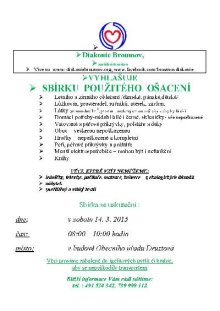 Diakonie Broumov ve spolupráci s OÚ Druztová vyhlašuje sbírku použitého ošacení v sobotu 14.3.2015 od 8:00 do 10.00 hodin v budově Obecního úřadu Druztová.